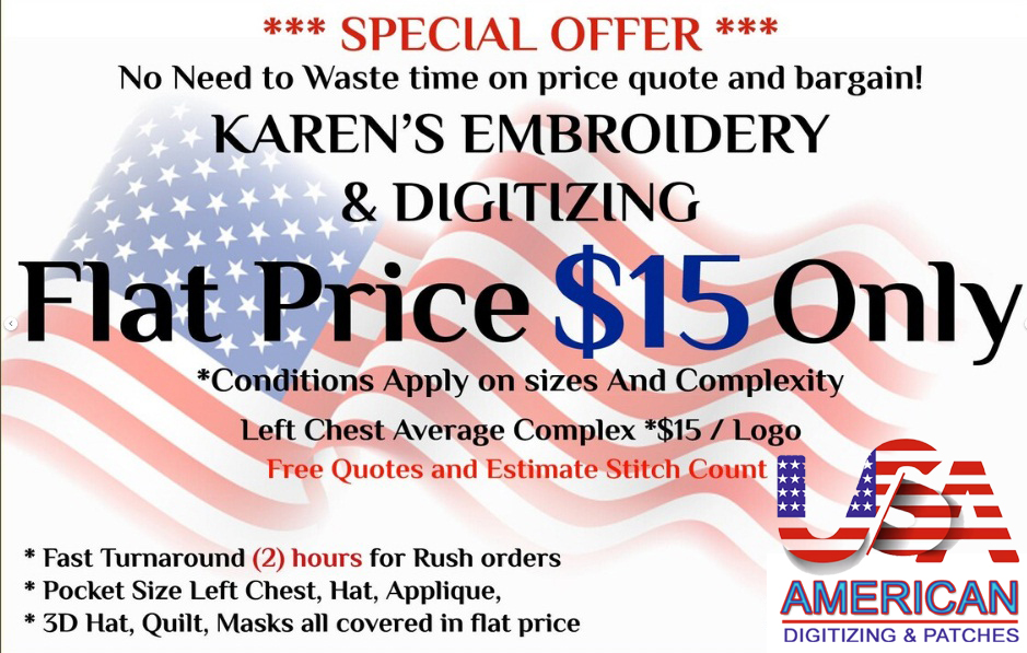 OUR PROFESSIONALS PROVIDE FAST TURNAROUND FOR CUSTOM EMBROIDERY DIGITIZING / VECTOR ARTWORK / LOGOS / SIGNS / VEHICLE DECALS TO ALL CLIENTS.